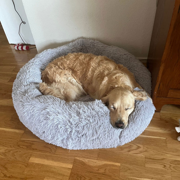 Suosittelemme mittaamaan koirasi pituuden kuonosta hännän tyveen saakka ja valitsemaan pedin, joka on tätä 20 cm pidempi. Jos koirasi on esimerkiksi 75 cm pitkä, kannattaa sinun ostaa XL-kokoinen CalmBed, jonka halkaisija on 100 cm.